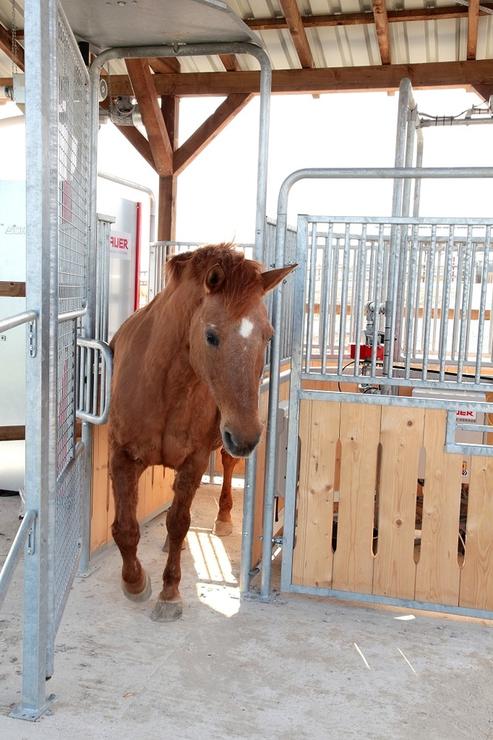 - Kraftfutterstationen mit computerunterstützter Fütterung je nach Bedarf des Pferdes für ausgewogene Nahrungsaufnahme in kleinen Portionen