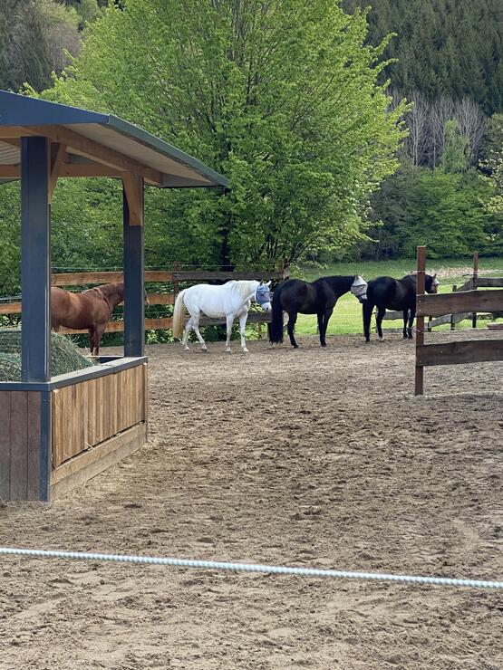 Box / Offenstall– In der Sommerzeit 24 Stunden Weidegang im Herdenverband in Robusthaltung– In der Winterzeit tagsüber in Gruppen auf befestigten Paddocks,oder Offenstall 24/7 Heu / Heulage / bedampftes Heu Hafer – 1x täglich Misten – Rausbringservice – Freie Trainerwahl Weitere Sonderleistung auf Anfrage. |