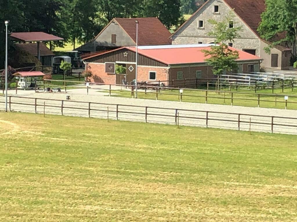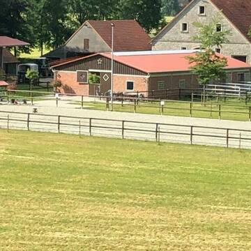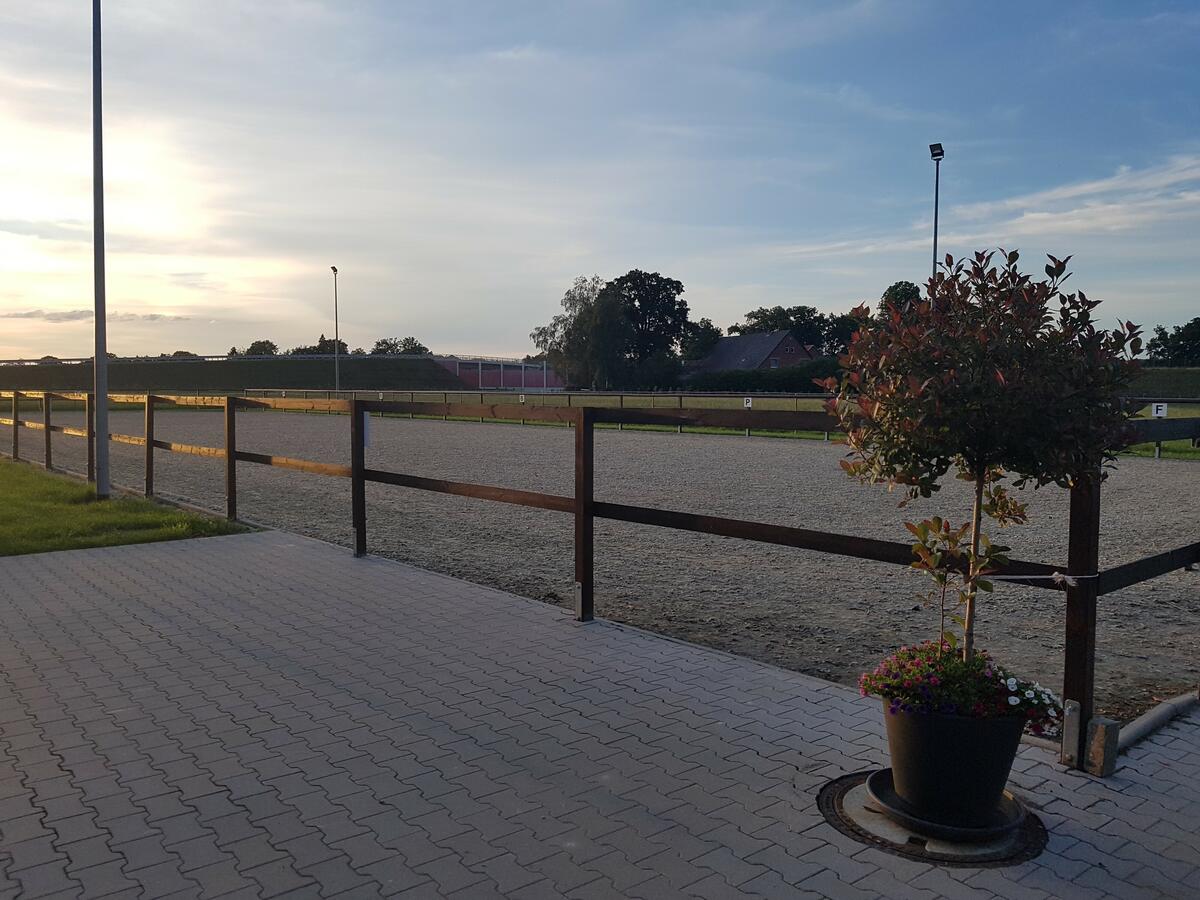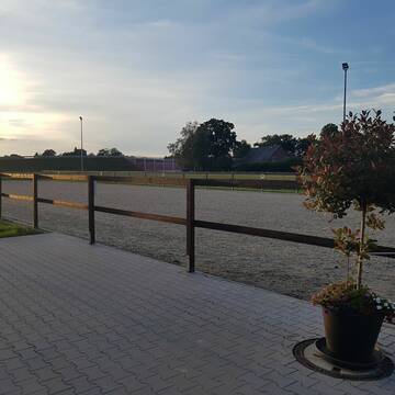 - Zusätzlich steht ein großer dränierter Reitplatz mit Beleuchtung zur Verfügung