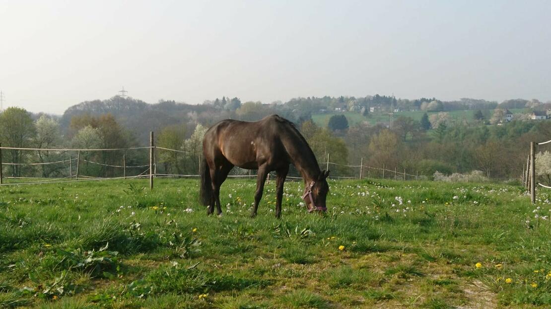 In unserem Pferdepensionsstall, in idyllischer Lage, haben wir 25 Einstellerboxen. Es sind große, helle und luftige Außenboxen und moderne Paddockboxen. Wir sind ein familiärer Stall in dem vom reinen Freizeitreiter bis zum tunierambitioniertem Reiter, von der Remonte bis zum Rentner jeder willkommen ist. In idyllischer Lage können hier Pferd und Reiter zur Ruhe kommen. Bei uns besteht Impfpflicht gegen Influenza, Tetanus und Herpes. Der Bestand wird drei mal jährlich Entwurmt. Die Paddockboxen sind mit Lamellen ausgestattet, die in den Sommermonaten individuell ausgehängt werden können. Die Paddockboxen haben Türen die bei extremen Wetterlagen wie Sturm oder Glatteis geschlossen werden. Die Pferdeboxen werden im rund um sorglos Paket inclusive Misten und Vollpension angeboten. Es besteht auch die Möglichkeit auf Leinstroh selbst zu misten. Ich selbst bin gelernte Berufsreiterin und züchte erfolgreich Sportpferde. Ich verfüge über 20 Jahre Erfahrung in der Pferdehaltung. Wir haben eine moderne, helle Reithalle (20m x 40m), und Bewegungssandpaddocks. Die Reithalle bietet mit ihrem sehr gutem und sorgfältig gepflegtem Boden, den großen Folienspiegeln und der geringen Belegungsrate ideale Voraussetzungen für motivierte Reiter. Der Stall liegt in einem wunderbaren Außreitgelände. Wir bieten Ihnen 365 Tage im Jahr Weide- bzw. Paddockservice (7 Tage die Woche). Im Sommer können die Pferde auf die großzügigen Wiesen (fünf Stunden Weidegang) und im Winter stehen Sandpaddocks (täglich zwei Stunden) bereit. Die Pferde gehen in Zweiergruppen raus. Wir Füttern wir 3mal täglich Heu (beste Qualität ausschließlich erster Schnitt) und 3mal täglich Kraftfutter (frisch gequetschten Hafer oder Pellets). Als Einstreu kann zwischen Weizenstroh und Leinstroh gewählt werden. Bei uns steht das Wohl und die Gesundheit des Pferdes und die Zufriedenheit der Besitzer an erster Stelle . Die kleine Zahl an Pensionspferden ermöglicht die sehr individuelle, auf die Bedürfnisse der Pferde und ihrer Besitzer angepasste Betreuung der Pferde. Die große Reithalle ist auch im Winter nicht überfüllt, sodass einem entspannten Reiten nichts im Wege steht. Ich freue mich auf Ihren Anruf oder Ihren Besuch. Anne Wellershaus Neuenhof 2, 51399 Burscheid [für Telefonnummer anmelden ]