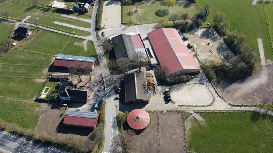 Unsere Reitanlage liegt in Dorsten-Östrich nur 2 Autominuten von der Autobahn 31 entfernt und somit perfekt aus dem Münsterland, wie auch aus dem Ruhrgebiet zu erreichen. Unsere Anlage bietet Platz für ca. 50 Pferde. Hafer, Heu und Stroh wird selber Produziert um hohe Qualitäten sicherzustellen. Das Angebot reicht von Innen- oder Fensterboxen in Halbpension, bis hin zu Vollpension mit Solarium, Weideservice mit Anlegen von Gamaschen und vielem mehr. Im Sommer stehen die bei uns untergebrachten Pferde in Kleingruppen auf einer unserer 16 Weiden. Im Winter erholen sich die Weiden und die Pferde stehen schichtweise auf unseren Paddocks. Zum Hof gehören eine Führanlage mit überdachtem Longierplatz und ein freiluft Longierplatz, ebenfalls befinden sich auf dem Grundstück zwei Reithallen (20x40 und 20x60), sowie ein Dressur-, und ein Sandspringplatz, die vom Rv Lippe-Bruch-Gahlen betrieben werden. Preise von 240€ bis 370€ im Monat.