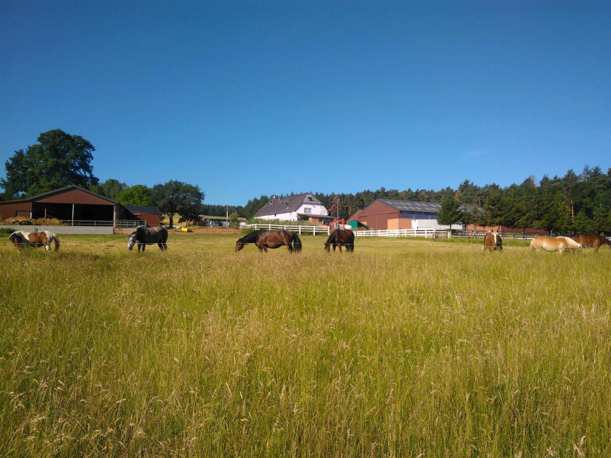 Der verkehrsgünstig, gut erreichbare und idyllisch gelegene Bauernhof verfügt über ein gutes Ausreitgelände. Auf dem Hof befindet sich ein großer und ein kleiner Offenstall sowie helle Innen und Außen-Boxen in verschiedenen Größen. Gerade erst wurden der neue überdachte Putzplatz und die neue helle geräumige Sattelkammer fertig. Der beleuchtbare Reitplatz verfügt über eine Größe von 50 x 30 m. Je nach Witterung und Jahreszeit besteht ganztägiger Weidegang. Der Einstallungspreis beginnt bei 350,- € / Pferd und Monat im Offenstall. Fragen werden gerne beantwortet. Für eine Besichtigung des Stalles bitte vorab einen Termin vereinbaren.