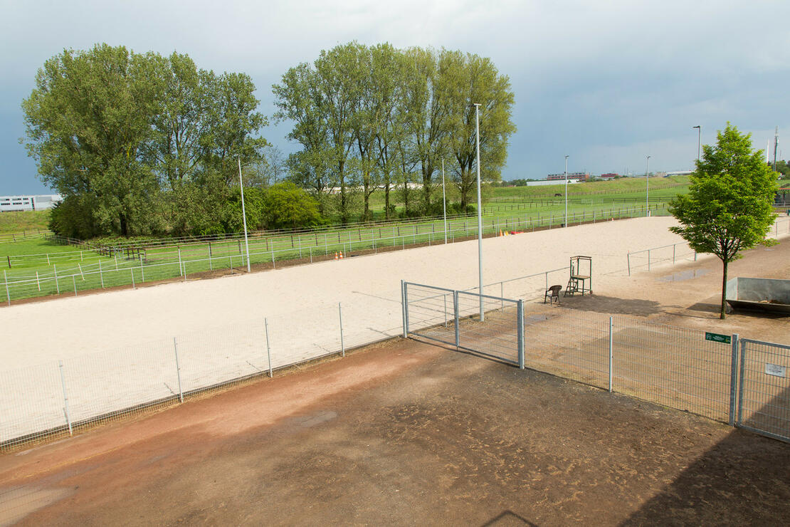 - Großer Außenplatz: 80 x 20 m mit Slidingbahn (20 x 20 m)