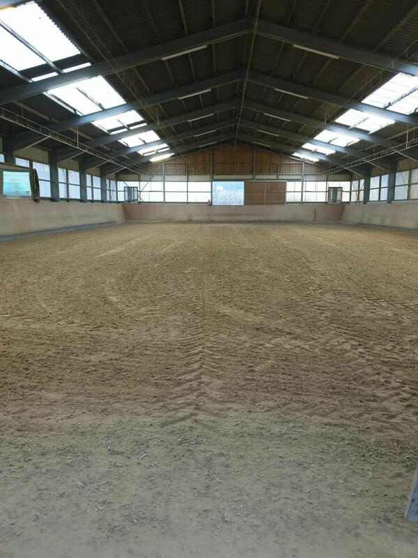 Es gibt eine Reithalle 20 x 40 m und einen Außenplatz, der ca. 22 x 50 m groß ist. Unser Longierzirkel mit einem Durchmesser von 20 m ist mit AS Ground ausgestattet, so dass er auch bei frostigen Temperaturen genutzt werden kann.