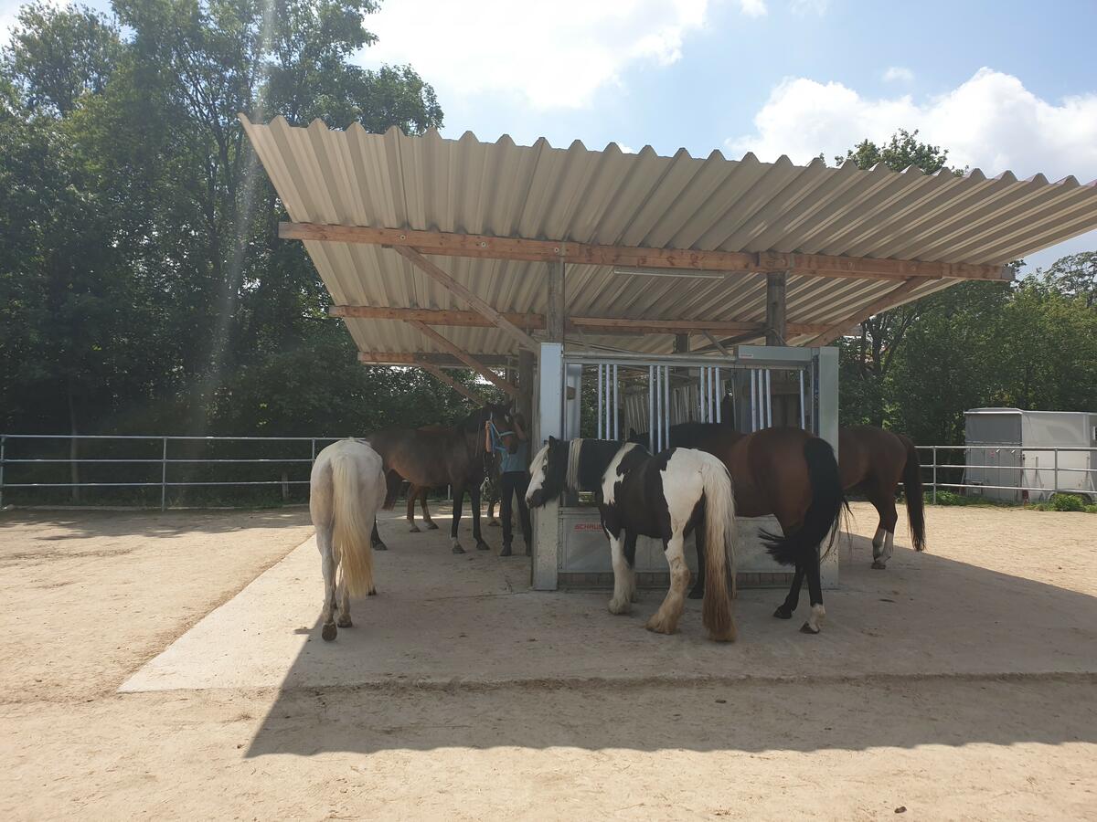 Unsere Technik hilft uns dabei, jedes Pferd individuell zu behandeln, die typischen Nachteile der Gruppenhaltung, wie ungleiche Raufutterverteilung und Stress beim Fressen minimieren wir, weil wir Pferde mit besonderem Bedarf individuell behandeln und füttern können. Davon profitiert die ganze Herde.