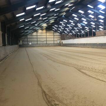 Was bietet die Anlage?: • Eine Reithalle 45 x 25 m • Eine Longierhalle 25 m • Überdachte moderne Führanlage • Einen Dressur-Außenplatz 40 x 20 m • Einen Springaußenplatz 60 x 50 m inkl. Parcours • 4 Ganzjahres-Paddocks • Sommerweide (inkl. 5 tägiger Weidegang Bring- und Holservice) • Vollpension (Stroh, Heulage, Hafer und Pellets) • Innen- sowie Außenboxen • Paddock-Boxen • Waschplatz • Solarium • Abschließbare Spinde • Beheizte Sattelkammer • Reiterstübchen • Pferdeausbildung • FN Pferdewirt • Unterricht und Beritt