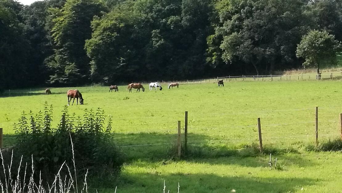 Darüber hinaus bietet die Anlage Solarium, Laufband (Horse Gym 2000) und ein idyllisches Ausreitgelände.