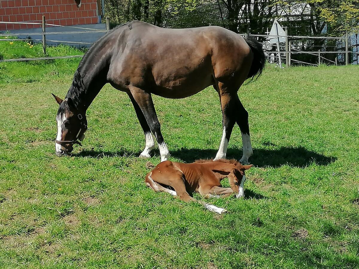 Bei uns: Management Ihrer Zuchtstute möglich! Von der Besamung mit dem Wunschhengst bis zum überwachten Abfohlen (Mit Kamera und Birth Alarm) kann ihre Stute bei uns professionell betreut werden.Jedes Jahr haben wir eine Gruppe von Stuten mit Fohlen bei Fuß auf unserem Betrieb.