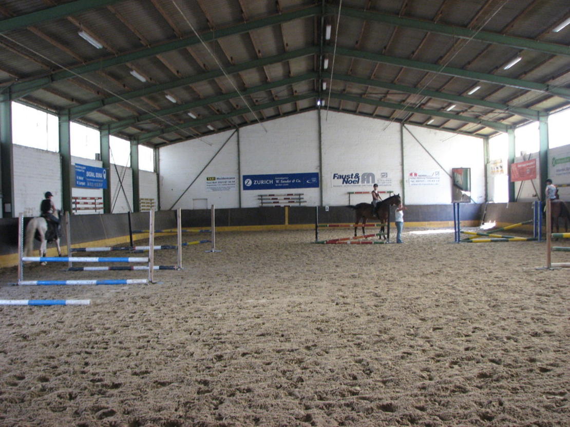 Stadtnah, und doch in ländlicher Umgebung, bieten wir Boxen für Pferde und Ponys an. Seit Juni 2012 auch Paddockboxen! Reitunterricht für Anfänger und Fortgeschrittene in Gruppen oder als Intensivtraining sind täglich möglich in unserer Reithalle 40x20 oder dem Allwetter-Außenplatz 40x20 Seit Oktober 2012 haben wir eine große Longierhalle Weideflächen von ca 47.000 qm vorhanden ! eine kleiner Rundreitweg steht seit Herbst 2017 ebenfalls zur Verfügung !!! Bushaltestelle der Linie 155/156 direkt vor der Anlage. Ausreitmöglichkeiten ab Stall vorhanden. ! unsere Reitböden sind unser Kapital, daher tägl. Pflege für beste Bedingungen ! Alle weiteren Infos finden Sie unter