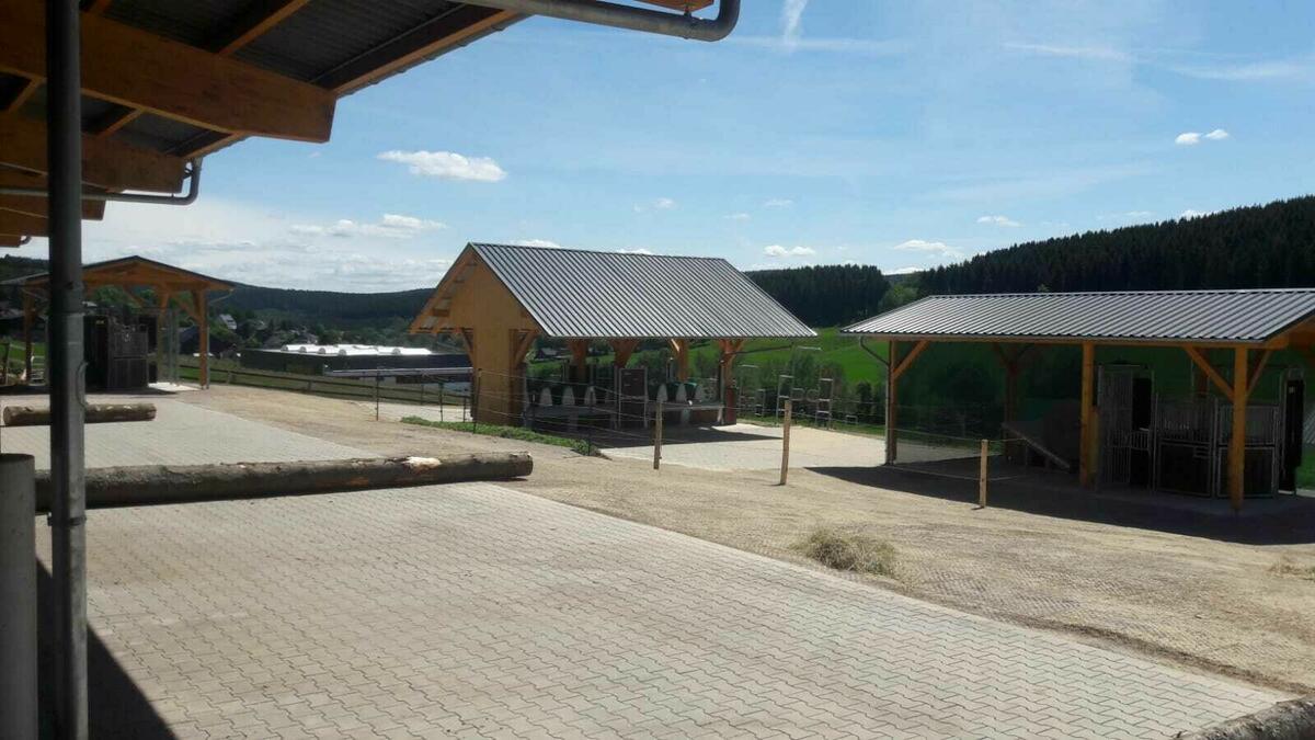 Bei der Konzeption der Anlage wurde sehr viel Wert auf auf ein mehr als ausreichendes Platzangebot gelegt, so ist die Paddockfläche mit knapp 5500qm deutlich größer, als es die Empfehlung vorgibt. Außerdem sorgen die Grüninseln in der Anlage und die Tatsache, dass kein Laufweg schmaler als 6m ist für ein entspanntes Herdenleben.