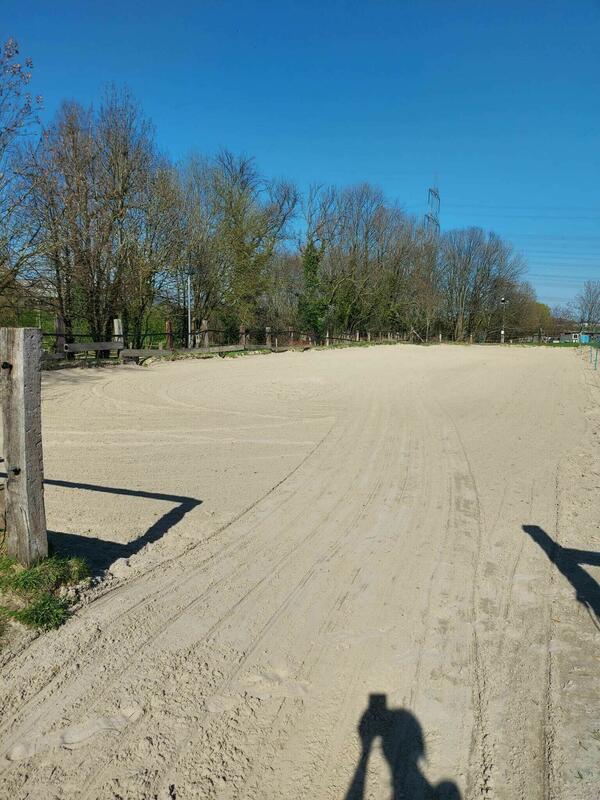 Und einen schönen drainagierten und beleuchteten Longierzirkel (20m).