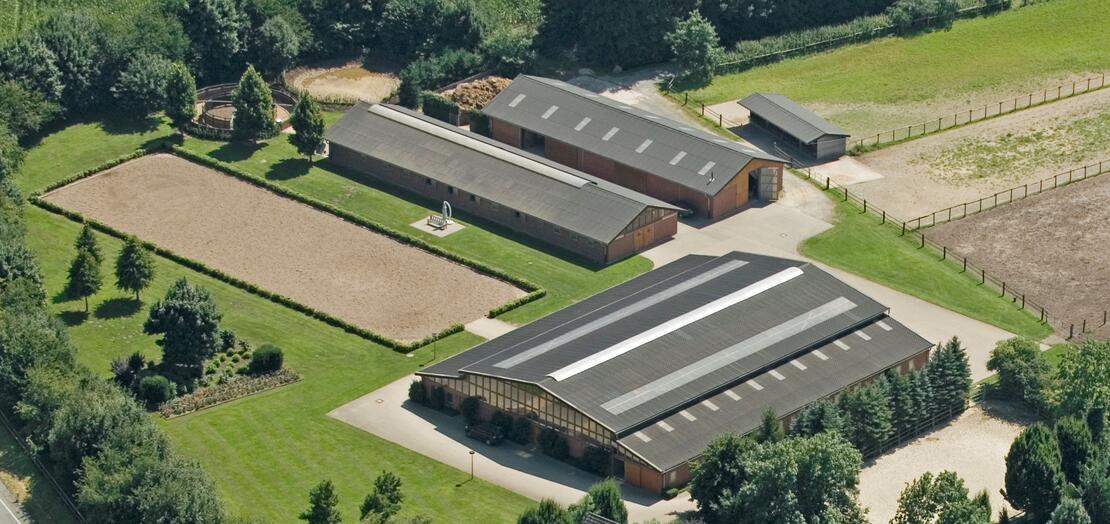 Unsere moderne Reitanlage ist umgeben von Wäldern und Wiesen und liegt trotzdem zentral mit idealer Anbindung zur Autobahn.