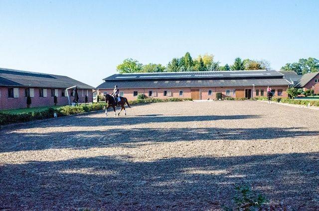 Auf dem weitläufigen Gelände herrschen hervorragende Trainingsmöglichkeiten als auch genug Raum für den Ausgleich für Reiter und Pferd.