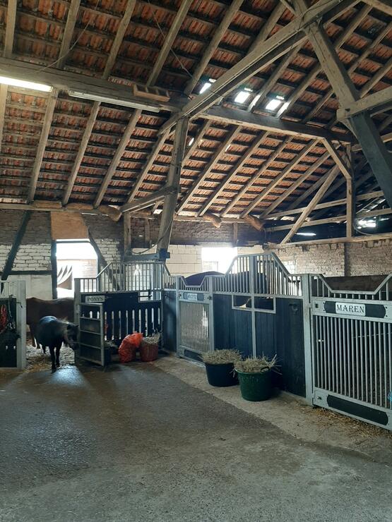 Wir vermieten unsere Boxen in Vollpension. Ihr bekommt für euer Pferd eine Box, entweder in einem unserer luftigen Ställe oder im Außenstall. Immer mit Blick nach draußen, Kontakt zu anderen Pferden, teilweise mit Paddock.