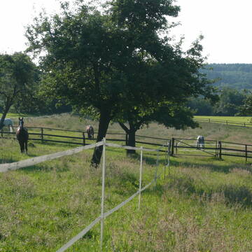 Wir bieten eine 20 x 40 m große Reithalle, einen 20 x 60 m großen Außenplatz und ein wunderschönes Ausreitgelände direkt angrenzend an unseren Hof. Im Sommer stehen ausreichend Weiden zur Verfügung. Ganzjährig können Paddocks genutzt werden. Ihr Pferd wird bestens durch unser qualifiziertes und engagiertes Personal versorgt. Zudem stehen sowohl für Dressur- als auch Springunterricht bis zur Klasse S qualifizierte Trainer zur Verfügung.