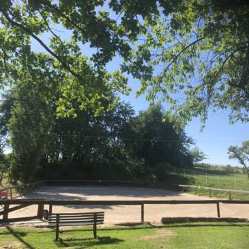 Reitplatz, Roundpen, kleine Bewegungshalle und wunderschönes Ausreitgelände vorhanden (5 min ist man im Wald). Idylle pur. Wer es gerne ruhig hat, ist hier genau richtig!