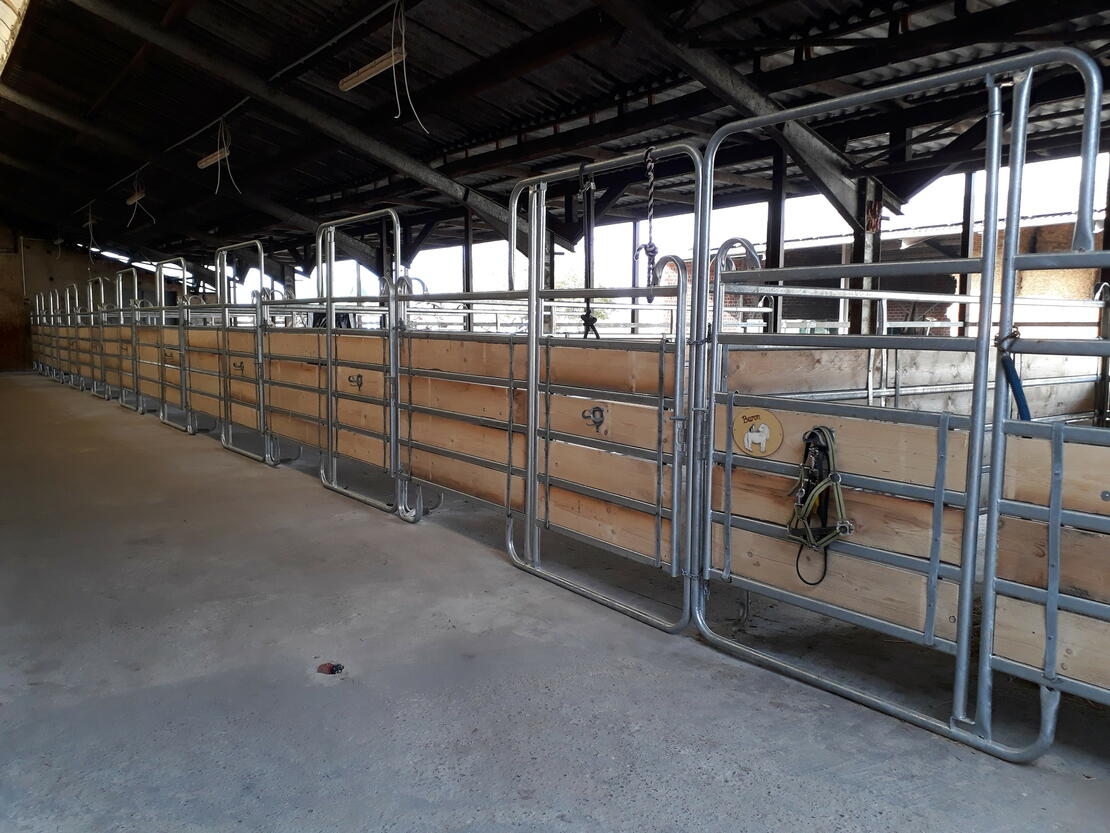 - große luftige Boxen, teilw. mit Paddock (Stroh oder Späne)