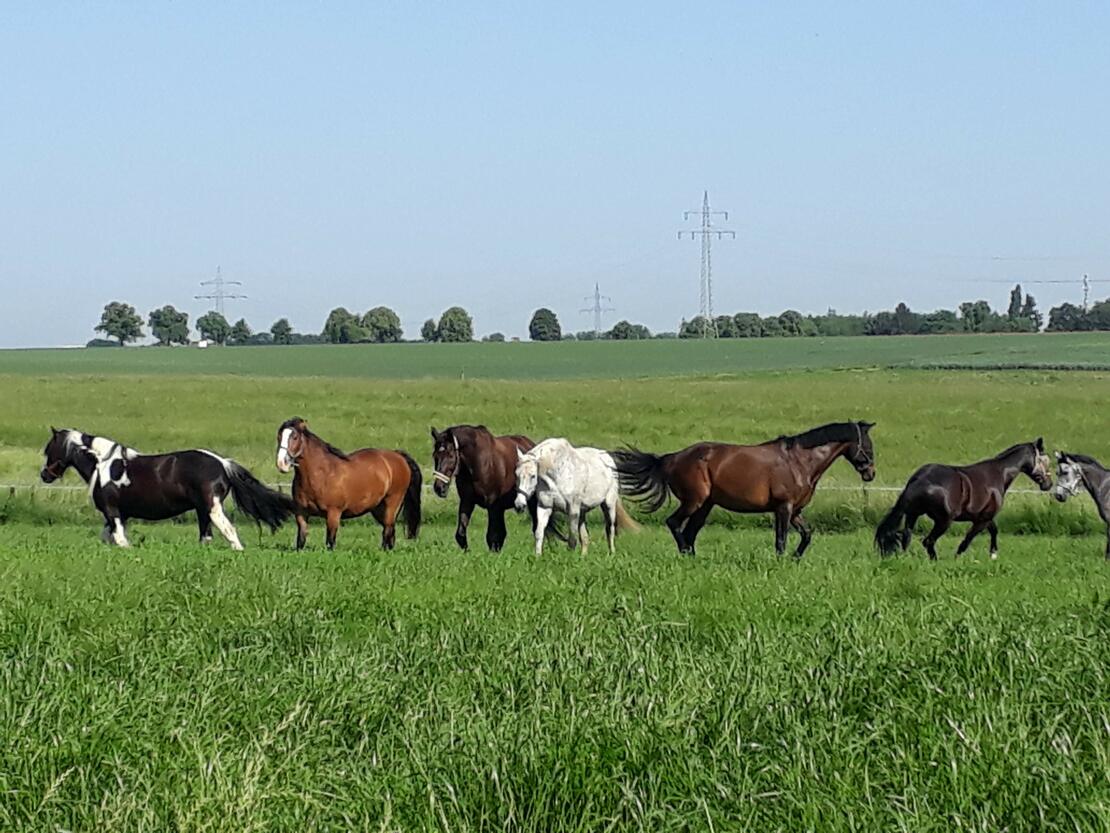 - ganzjähriger Weidegang auf großen Wiesen bis zu 11 Std.