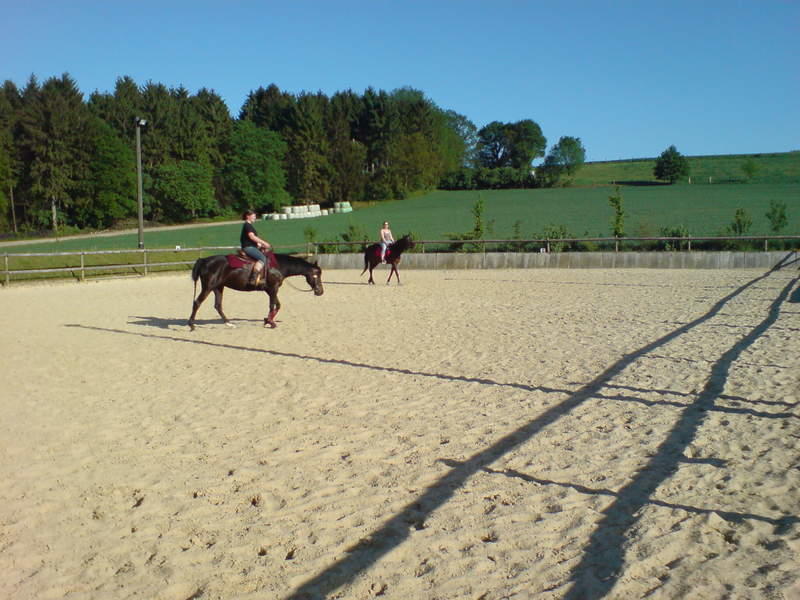 Im Sommer täglicher Weidegang, im Winter täglicher Auslauf mit Heu auf trockenen Paddocks, getrennt nach Stuten und Wallachen. Ein Reitplatz mit Drainage und Beleuchtung, daher so gut wie immer bereitbar, ein Roundpen ideal zum Longieren für das effektives Training/ Bodenarbeit und das Reitgelände von Oefte (zwischen Essen Kettwig und Werden) Ein Anhänger steht für Notfälle (z. B. Transport in die Tierklinik) zur Verfügung. Die Boxen müssen selbst gemistet werden Und man hat ein mal im Monat Stalldienst. Die Rauhfutter fütterung Und morgens Kraftfutter wird von uns übernommen.