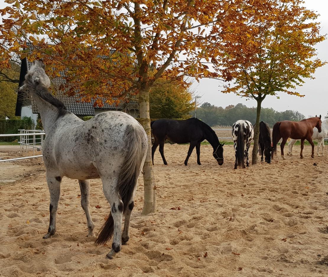 Weiter bieten wir • eine Reithalle (2020 komplett überarbeitet, neuer Unterbau, Nordsand, Licht und Beregnungsanlage.) • einen Aussenplatz (ca. 20 x 60) • offener Roundpen mit einem Durchmesser von 19 m (Überdachung derzeit in Bearbeitung) • eine überdachte Führanlage • ein grosses Solarium mit Rotlicht (Wärme) und UV-Bestrahlung (Vitamin D) • Sole-Inhalation mit dem equosonic mobile II • Extra-Raum für Heubedampfer • Sommer-Weiden getrennt nach Geschlecht (entspannte Herden) • zwei grosse (meist) trockene Gruppen-Winterpaddocks, die mit weichem Sand zum Liegen einladen • ein gemütliches Reiterstübchen und • ein herrliches, abwechslungsreiches Ausreitgelände • freie Trainerwahl • Die Anlage ist videoüberwacht.