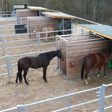 - Außenboxen mit täglichem Auslauf auf Paddock