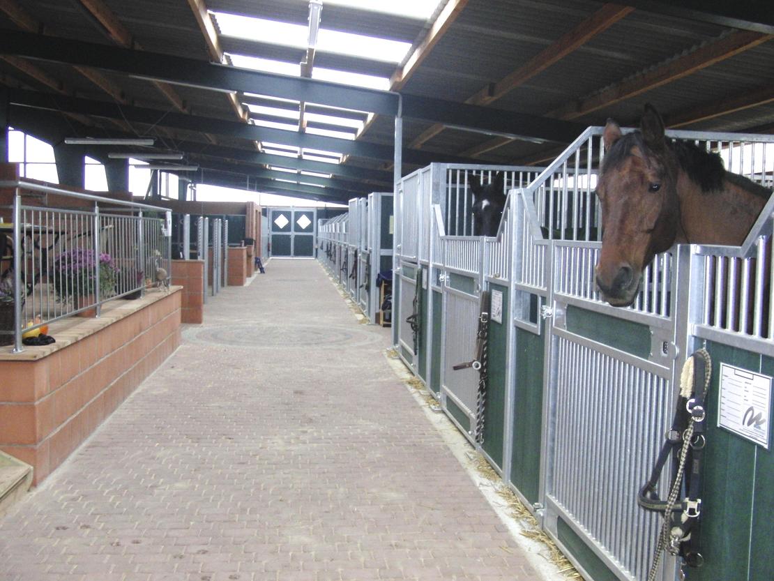 Unser Pferdeparadies befindet sich in Petershagen/ Ilvese, im äußersten Nordosten des Landes Nordrhein Westfalen zur Grenze Niedersachsen. Unsere Reitanlage wurde im Okt. 2009 eröffnet. In der Planung standen für uns Licht- Luft und Kommunikation an oberster Stelle, was wir auch umgesetzt haben. Schon im Jahr 2011 erreichten wir durch die Ausschreibung der FN „unser Stall soll besser werden“ den 3. Platz (Deutschlandweit). Die Anlage wird ausschließlich durch die eigene Familie betrieben und wir sind immer bemüht die Wünsche unserer Kunden zu erfüllen. Im Stall befinden sich 15 Exklusivboxen (3x4m mit Paddock), 6 Standardboxen (3x4m mit großem Fenster). Gefüttert wird 3mal täglich, die Pferde können im Sommer wie auch im Winter die Weiden (6 ha) direkt vor der Reithalle nutzen. Jeder Einsteller bekommt mind. 1 abschließbaren Sattelschrank. Des weiteren gibt es 3 Pferdeputzplätze mit Sicherheits- Anbindepfosten , einem Waschplatz und einem Pferdesolarium. Jetzt kommt unser dritter Punkt aus der Planung zur Geltung „ Kommunikation“. Vom offenen Casinobereich haben sie Einblick in die Reithalle 20x40m, die zum teil mit Windschutznetzen und einem Licht-Lüftungsfirst ausgestattet ist, wie auch zu den Putzplätzen und den Pferdeställen, dadurch stehen sie immer Kontakt zu den anderen Einsteller, denn unter Pferdeleuten gibt es immer etwas zu berichten. Eine kleine Kaffeeküche ist selbstverständlich auch vorhanden wo man sich an kalten Tagen auch mal aufwärmen kann. Im Jahr 2013 wurde durch die Firma Fair-Ground ein Außenreitplatz 30x50m geplant und gebaut. Ein herrliches Ausreitgelände finden sie direkt vor unserer Tür. (zb. durch die Loccumer-Heide ). Jetzt können wir nur noch sagen „anschauen- einstellen- wohl fühlen“.