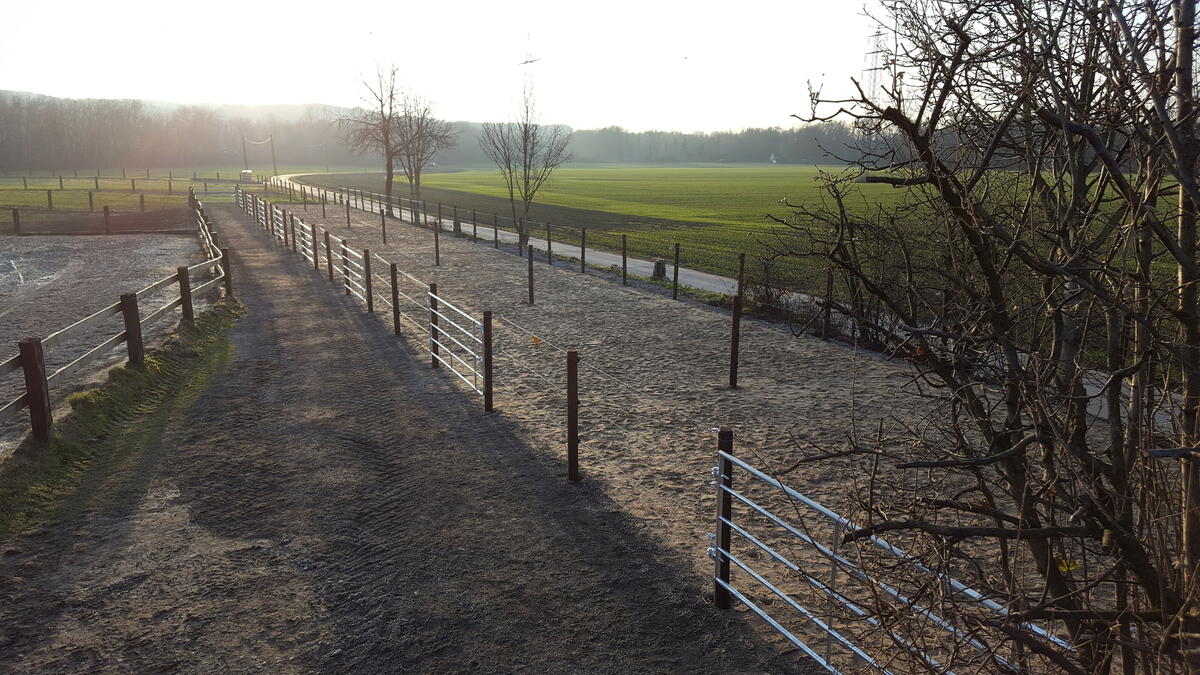 Die schöne familiäre Reitanlage im Ratinger Süden mit den großen Ausreitgelände "Aaper Wald" bietet für Freizeitreiter und auch Turnierreiter viel Abwechslung. Besuchen Sie die kleine/50 Boxen und heimische Freizeitanlage. Die Reithalle hat die Maße 20 x 40m und der Außenplatz 35 x 40m. Alle Pferde kommen für einen halben Tag raus, entweder auf die Weide oder auf die 20 Winterpaddocks.