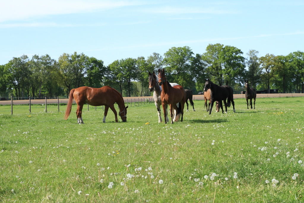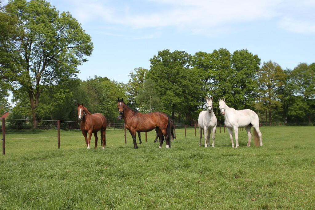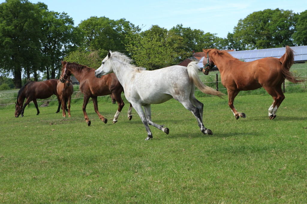 Unsere Gruppen sind nach Stuten und Wallachen getrennt und in der Regel sind maximal vier Pferde auf einer Weide. Unsere Rentner bekommen 2 x täglich seniorengerechtes Müsli und reichlich Raufutter zu fressen. Im Sommer Fliegenmasken und im Winter, bei Bedarf, Outdoordecken selbstverständlich.