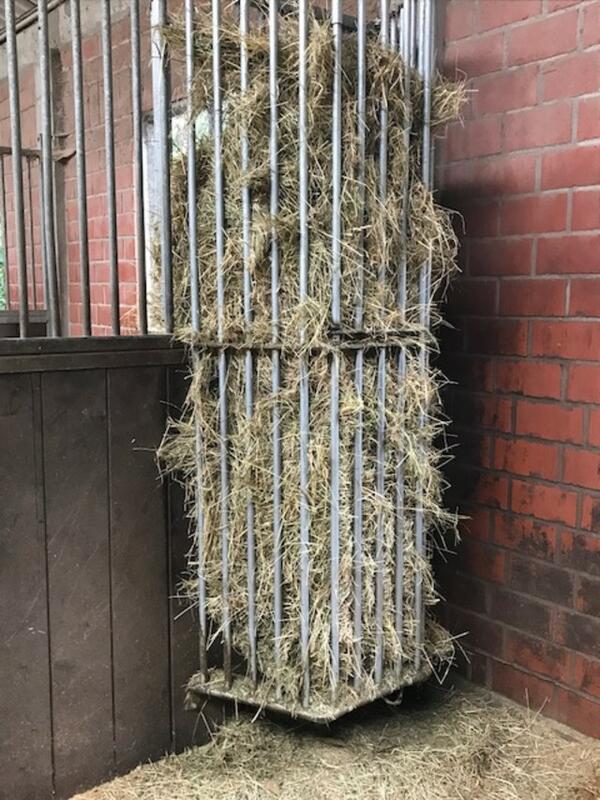 Heu steht den Pferden praktisch den ganzen Tag in den Boxen zur Verfügung. Dafür ist in jeder Box eine Heuraufe angebracht.