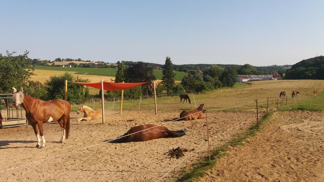 - ein Wallachoffenstall 24h Heu, mit unbegrenzter Weidezeit inkl. Misten von Mo-Fr (340€)