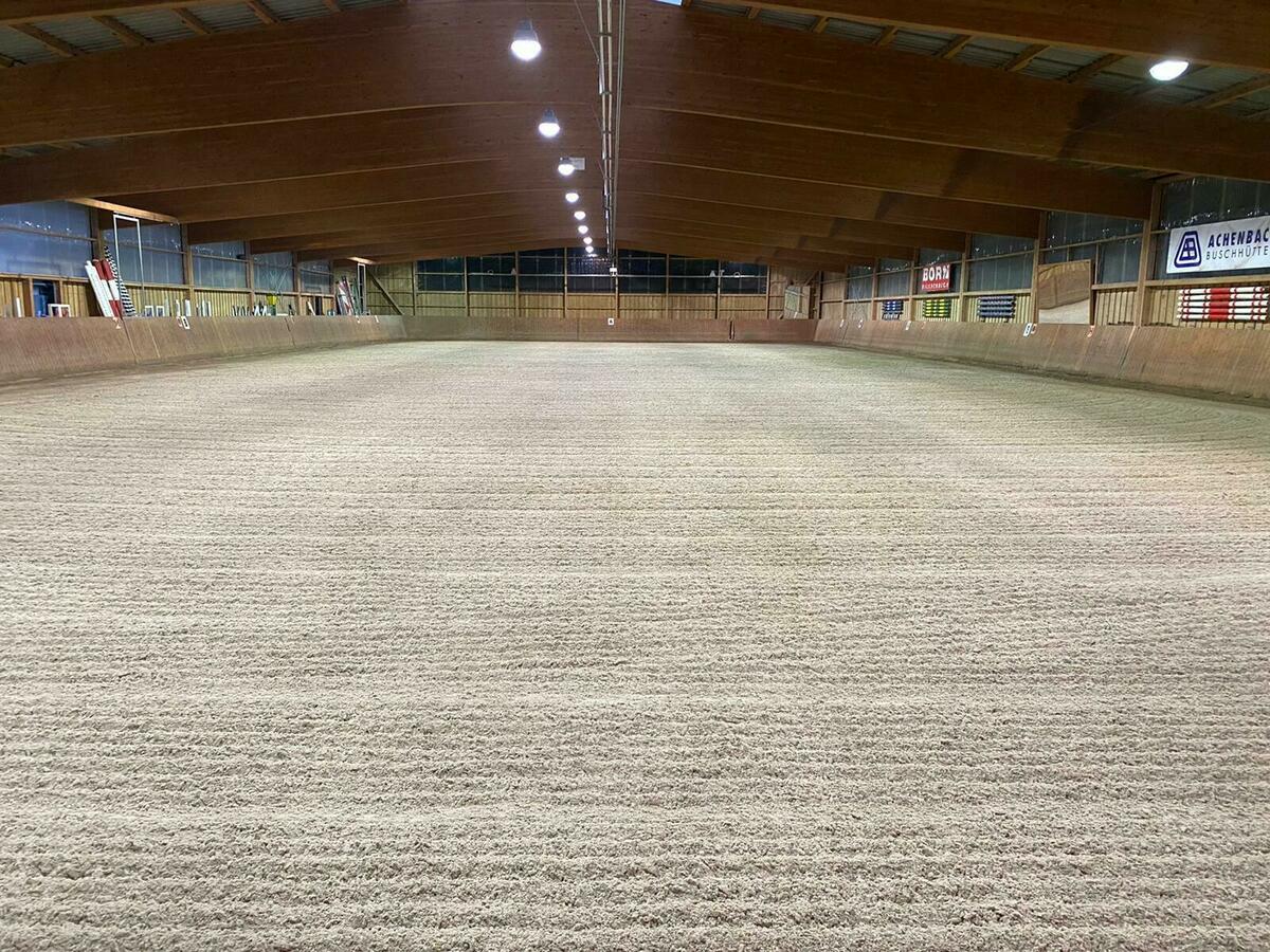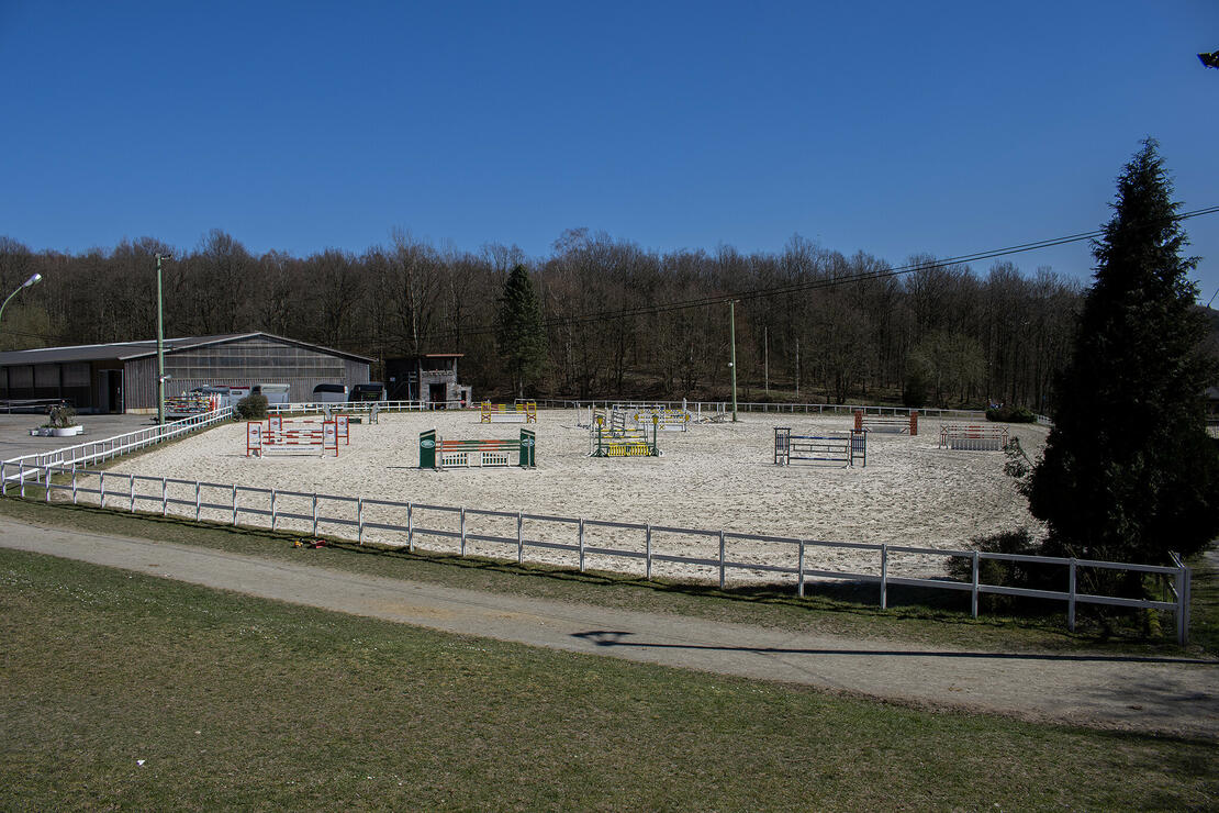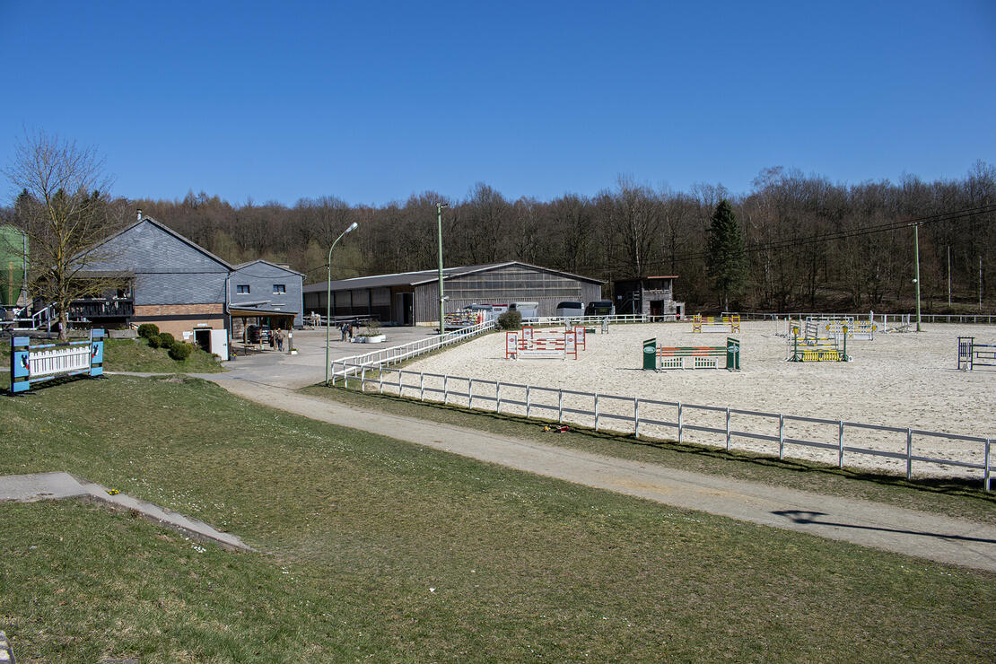 Der Stall verfügt über eine TOP zentral gelegene Lage und grenzt dabei unmittelbar an ein traumhaftes Ausreitgelände. Wir reiten von unserem XXL Springplatz direkt in den Wald. Neben dem großen Springplatz verfügen wir noch über einen Dressurplatz (25mx50m), einen Longierzirkel, eine große Reithalle (25mx60m), eine kleine Reithalle (20mx40m), eine überdachte Führmaschine, Winterpaddocks, Winterweiden sowie Sommerweiden.
