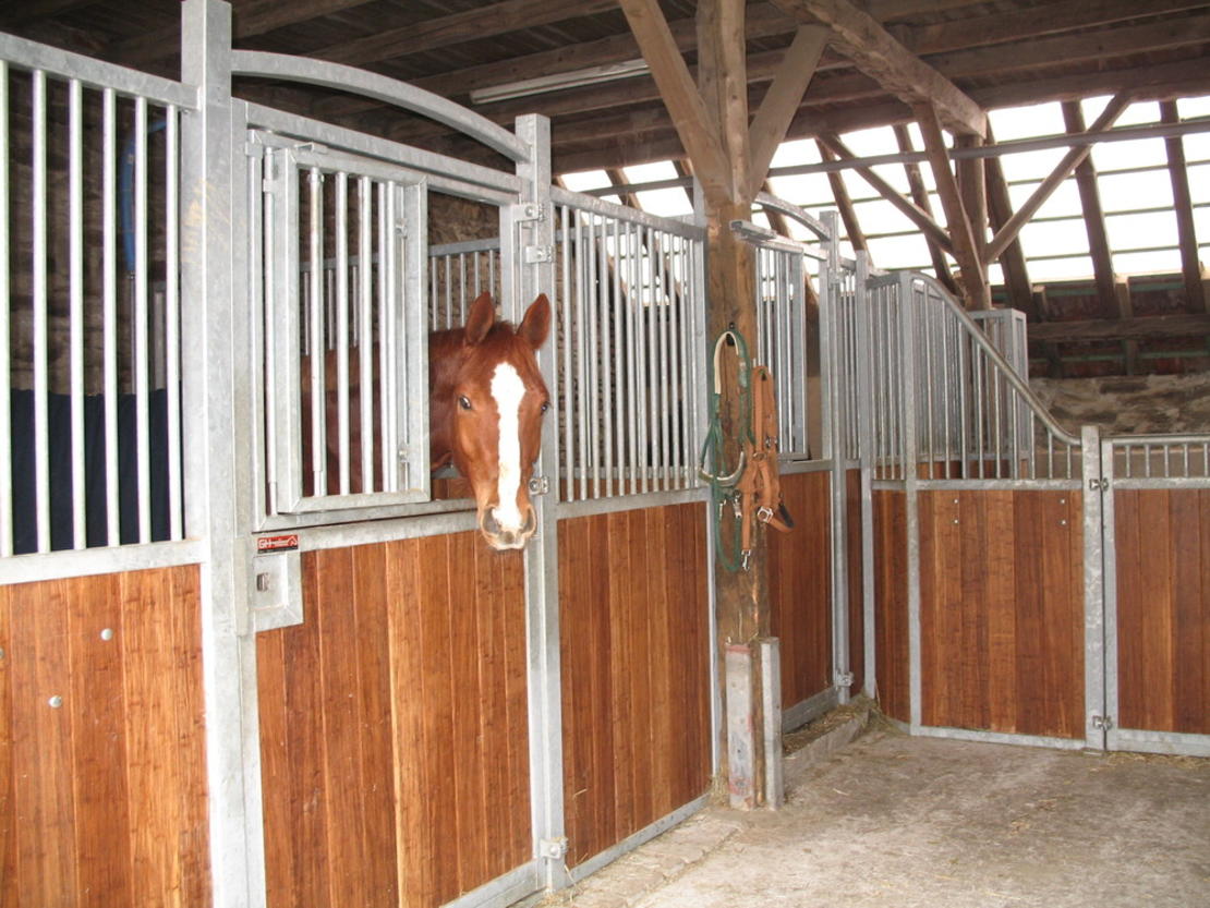 Wir sind ein landwirtschaftliches Familienunternehmen, das seine Tierhaltung seit 1999 komplett auf Pferde umgestellt hat. Rund 35 ha Grün- und Ackerland werden von uns bewirtschaftet, so dass wir Stroh, Heulage, Heu, Gerste und Hafer im Wesentlichen selbst herstellen können. Somit haben wir einen direkten Einfluss auf die Qualität unseres Kraft- und Raufutters, das 2 x täglich verfüttert wird.
