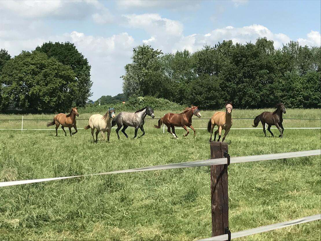 - Täglicher Weidegang/Paddock 7 Tage die Woche, artgerecht in nach Geschlechtern getrennten Herden.