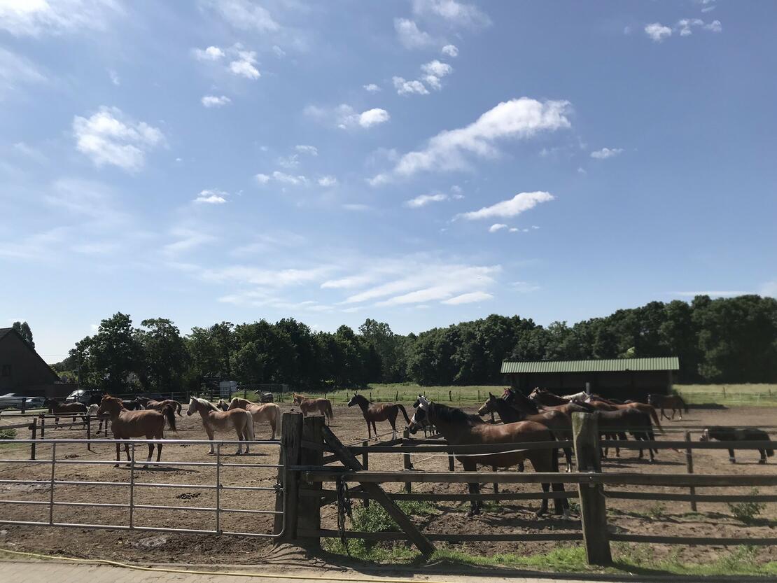 - Altersgemischte Gruppe von derzeit 8 gut sozialisierten Pferden