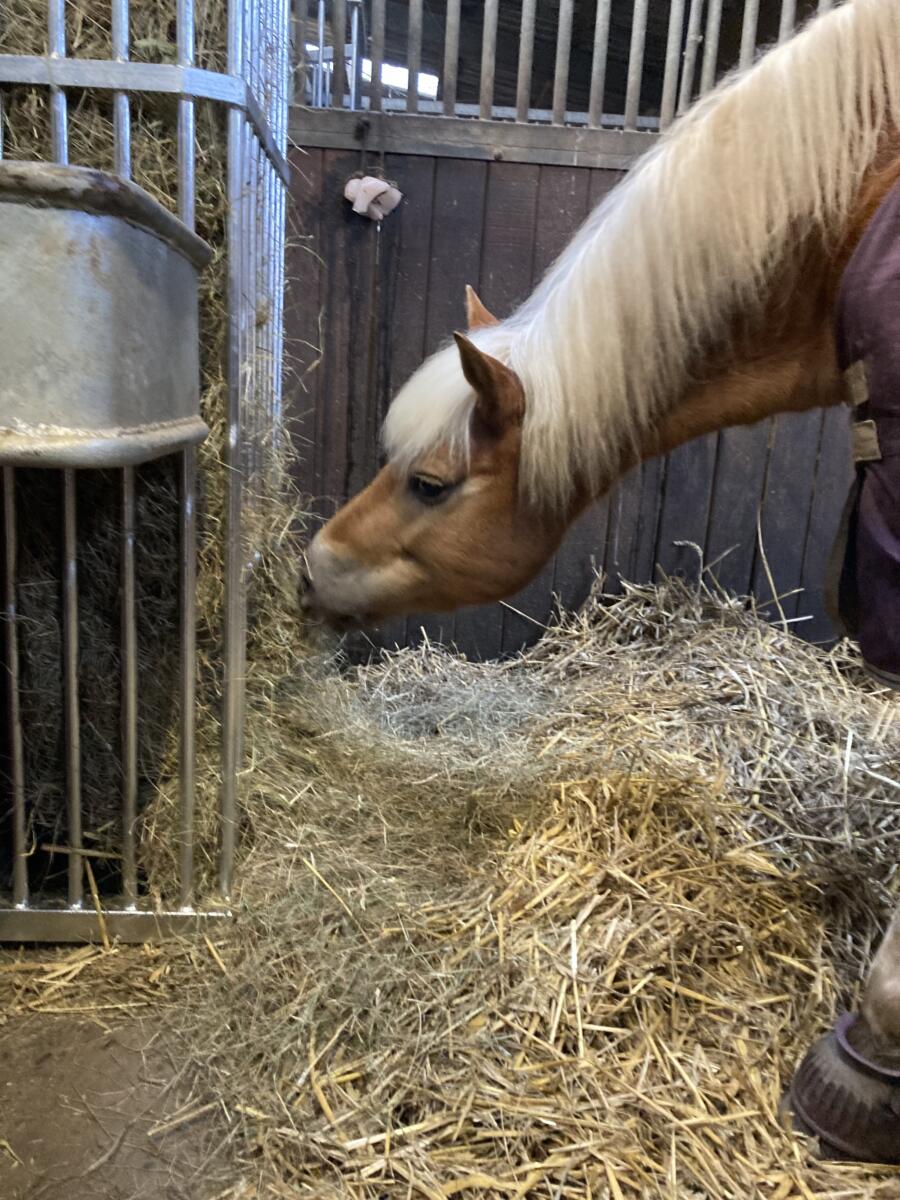 - 3 mal täglich ausreichend Heu (im Winter auch Heulage möglich) und 2 mal Kraftfutter (Hafer und/oder haferfreies Müsli).