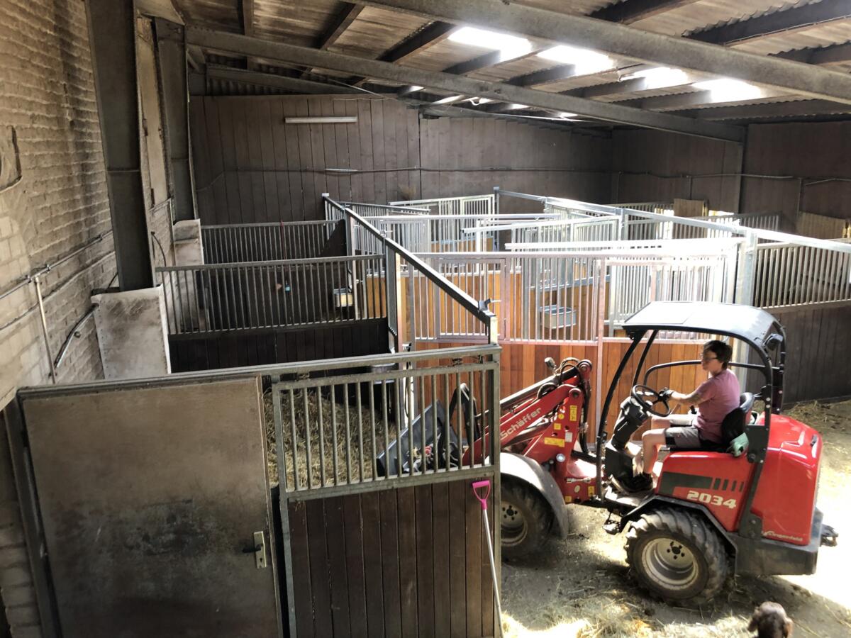 - 6 Laufboxen von 22qm bis 30qm mit Dinkelspeltz als Einstreu