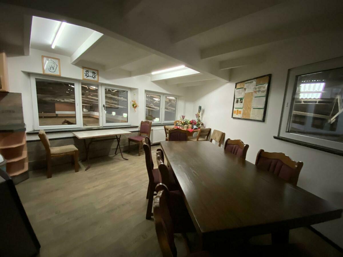Für die Vor- und Nachsorge ihrer Pferde gibt es Anbindemöglichkeiten (drinnen und draußen), einen Waschplatz und ein Solarium. Wir haben genug Platz für Spinde und besitzen eine versicherte Sattelkammer. Den eigenen Schrank bringen sie gerne mit. Nach dem Reiten genießen sie gern noch etwas die Atmosphäre in unserem Reiterstübchen über der Halle. Wir feiern gemeinsam Oktoberfest übernachten mit Zelten am Stall, machen Grillabende zusammen. Sie sind nicht alleine wir sind eine Gemeinschaft. Ein WC ist vorhanden.