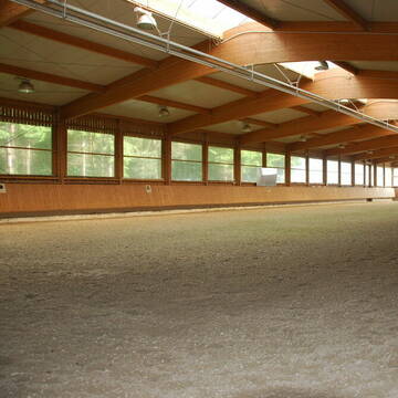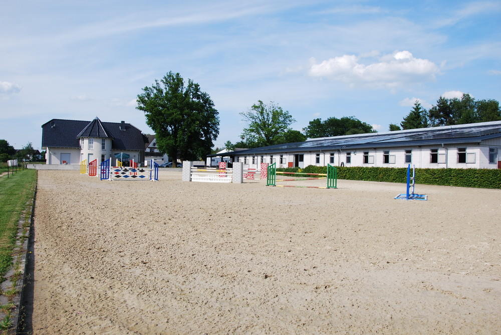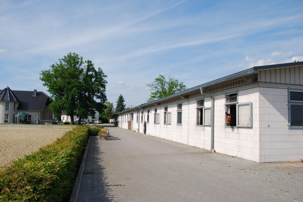 Wir bieten beste Trainingsmöglichkeiten für Turnierreiter und Hobbyreiter auf unserer modernen Reitanlage am nördlichen Rand des Westerwalds. Die Anlage in bester Aussichtslage besteht aus einer lichtdurchfluteten Reithalle 20x60m Hufschlagmaß, angrenzendem Stalltrakt mit 25 Boxen, Außenreit- und Springplatz 42x65m mit Vliesboden, arrondierte Weiden, überdachter Longier Zirkel und eine nette Stallgemeinschaft. Individuelle Fütterung und Betreuung Ihres Pferdes ist für uns selbstverständlich. Wir bieten: Große Innenboxen 420,-- €, Fensterboxen 460,--€ incl. Mwst. Fütterung von Kraftfutter in kleinen Portionen 8x täglich Heufütterung 3 x täglich, im Sommer zusätzlich Weidegang Das Misten der Boxen erfolgt durch den Pferdebesitzer, Späneeinstreu wird gestellt Winterpaddock, Laufbandnutzung und Solarium gegen Gebühr Hängerstellplätze vorhanden Bei Interesse bitte anfragen, gerne zeigen wir Ihnen unsere Anlage