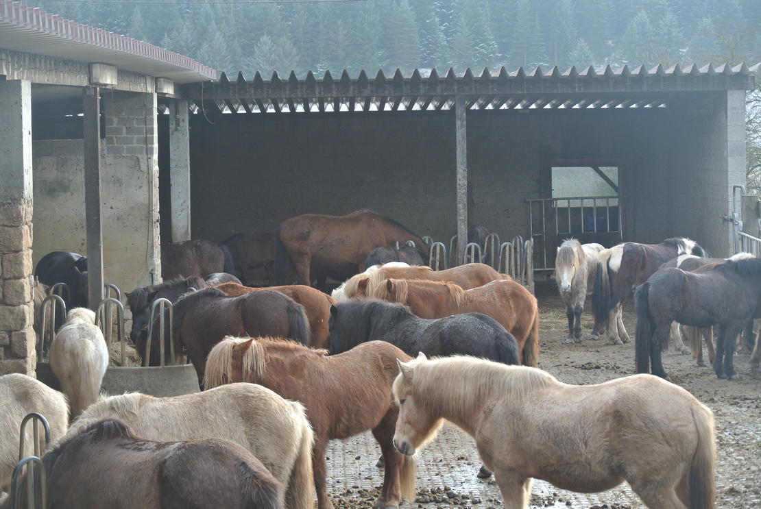 • Großgruppenhaltung: Offenstallplätze mit Weidegang in geschlechtergemischter Gruppe (ca. 40 Pferde) für Isländer und ähnliche robuste Kleinpferderassen; allergiker-gerechte Fütterung mit Heulage, Vollpension inklusive Misten und Grundfutter-Versorgung. Preis für Kleinpferd: 230 Euro/Monat.