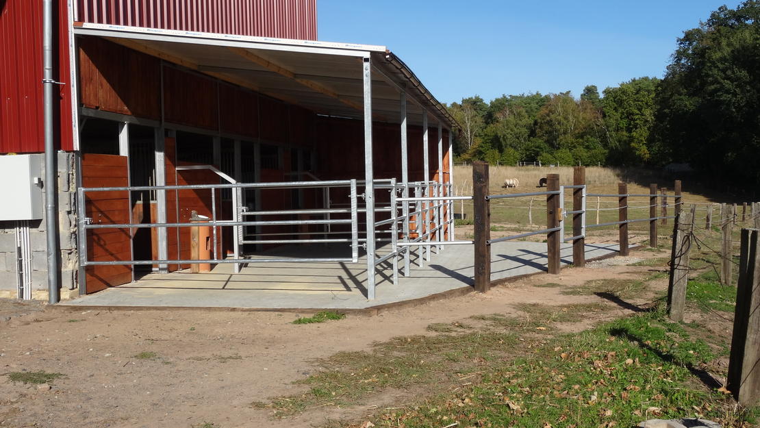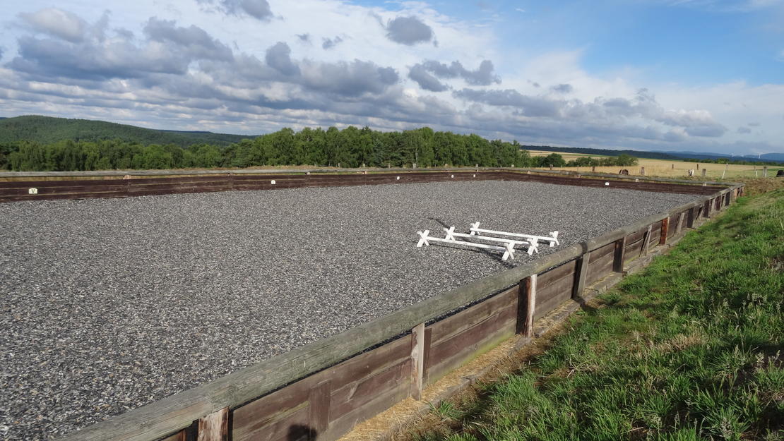 Die Anlage beinhaltet eine Reithalle (20x40), einen, direkt an den Stall angrenzenden, Sandreitplatz (20x40) und einen Swing Ground Reitplatz (20x60). Weiterhin gibt es Stellplätze für die Pferdehänger und einen Abspritzplatz.