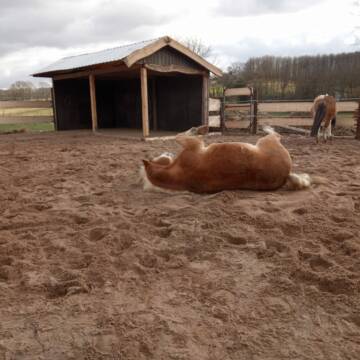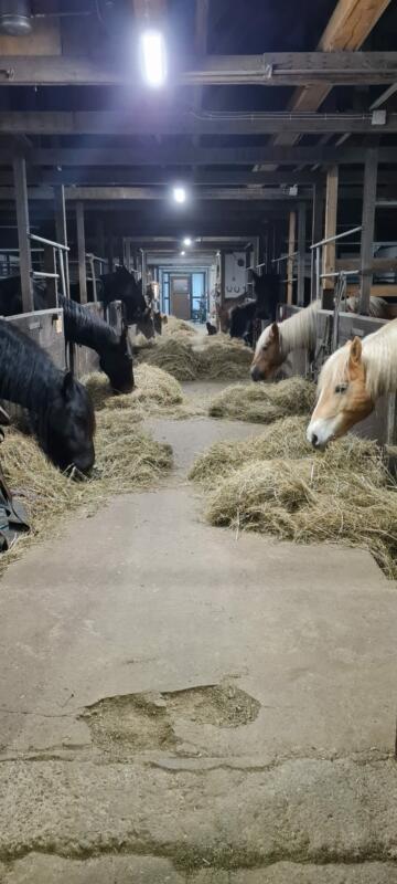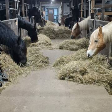 . Wintermonate: Jedes Pferd genießt in den Wintermonaten den Komfort einer eigenen Box und täglichen Auslauf auf einem matschfreien Paddock mit Unterstand. Wir füttern unsere Pferde dreimal täglich mit Heu aus eigener Herstellung und bieten selbstverständlich auch eine individuelle Versorgung nach Bedarf an. . Ausstattung: