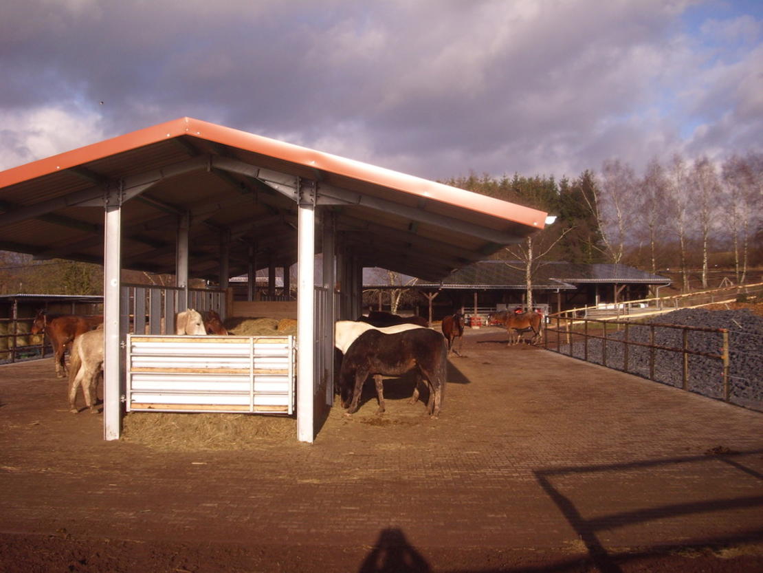Die gemischte Herde besteht aus ca. 20 Pferden. Stuten und Wallache stehen zusammen. Die Pferde haben die freie Wahl auf dem 4000 qm befestigtem Auslauf zu bleiben oder auf die weitläufigen Koppeln zu gehen, Sommer wie Winter. An den Auslauf schließen sich direkt 24 Hektar Koppeln an. Die Pferde haben das ganze Jahr über die Möglichkeit auf den Wiesen zu grasen, immer mit einem direkten Zugang zum Stall. Putzplatz, Waschplatz, Sattelschränke, Reiterstübchen, Reitplatz 20x40, Round Pen 18m, offene Reithalle mit Beregnungsanlage 20x40, wunderschönes Ausreitgelände. Einzelheiten finden Sie auf der Homepage (www.christinenhof-bewegungsstall.de).