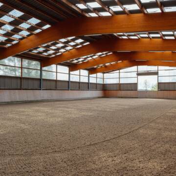 Ein große lichtdurchflutete Reithalle (20mx40m), ein Roundpen sowie ein Außenreitplatz mit Flutlicht bieten exklusiv den Einstellern viele Bewegungsmöglichkeiten. Diverse Putzplätze, ein Waschplatz, Solarium und eine Pferdedecken-Heizung stehen zur Verfügung. Bei uns gibt es keinen Schulbetrieb, daher ist die Anlage jederzeit nur für Einsteller nutzbar. Wir bieten eine freie Auswahl von Schmied, Tierarzt und Trainern oder stellen auch gerne entsprechenden Kontakt her.