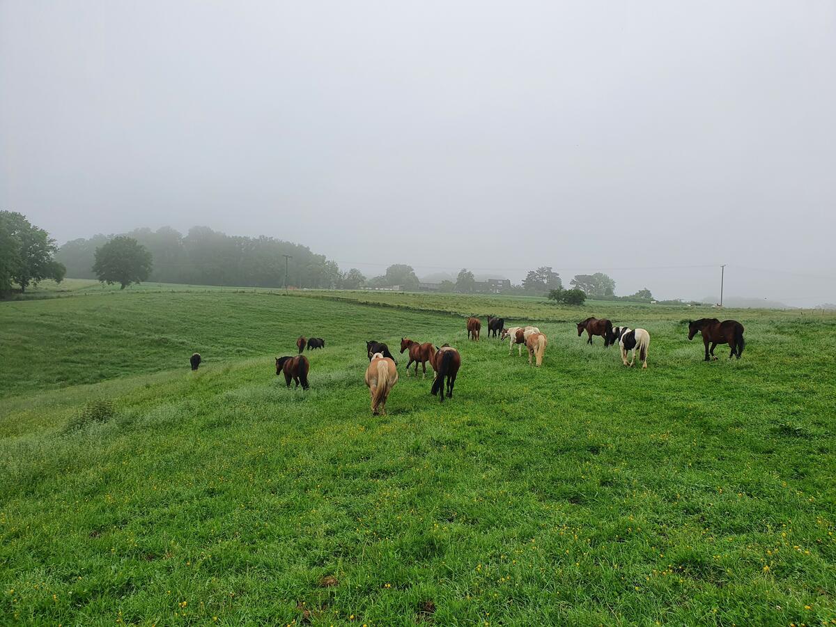 Unsere Pferde stehen in einem gemischten Herdenverband. Der Kern der Herde steht seit über 17 Jahre zusammen und weist eine hohe soziale Kompetenz auf. Neuankömmlinge werden nach sorgfältiger Integration problemlos aufgenommen. Alle Pferde sind unbeschlagen. Durch die gefestigte Herdenstrucktur ist unser Stall auch für Oldies geeignet. Der Großteil der Herde sind Warmblüter. Durch ein großzügiges Platzangebot und jahrelanger Erfahrung in Haltung, Zucht und Aufzucht kann optimal auch auf die Bedürfnisse hinsichtlich Bewegungspotential dieser Pferde eingegangen werden.