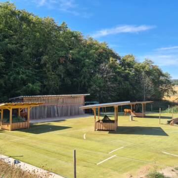Wir haben im Herbst 2009 den ersten HIT-Aktivstall in Rheinland Pfalz eröffnet. Seit dieser Zeit leben bei uns bis zu 30 Pferde in einer gemischten Herde. Dadurch, dass wir eine sehr geringe Fluktuation haben, konnte sich ein guter Herdenstamm von über 20 Tieren bilden. Das ist sehr selten und macht sich in einer geordneten Herdenstruktur bemerkbar. Die Pferde haben 24/7 Futter über zeitgesteuerte Heustationen/Heuraufen und Koppelgang. Wir haben ein sehr schönes Ausreitgelände zu bieten. Die Pferde laufen größtenteils Barhuf. Duplobeschlag ist erlaubt. In Ausnahmefällen, nach Tierärztlicher Anordnung ist auch ein Eisenbeschlag vorne erlaubt.