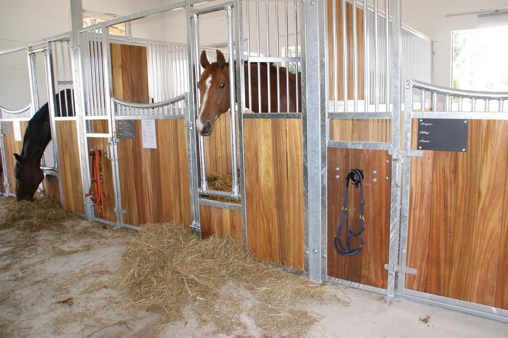 - Helle, große Pferdeboxen (3m x 4m) mit wärmedämmenden, gelenkschonenden Horsematten, eigenem Boxenschrank und angrenzendem großen, sonnigen Sandpaddock