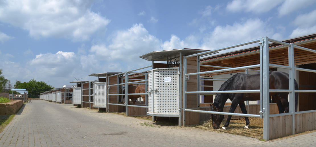 Paddockbox, VollpensionKraftfutterautomat pro Box, Dauerheugabe, Misten, Koppelnutzung, Anlagennutzung |