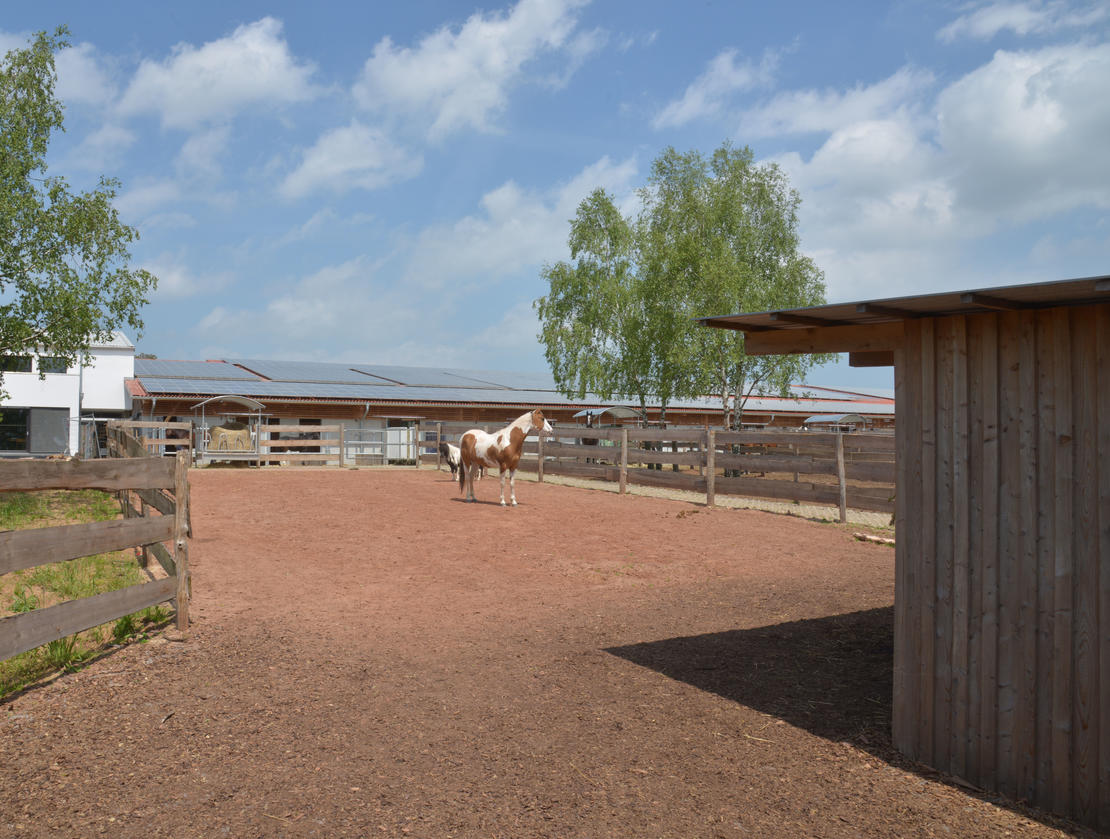 OffenstallplatzBereiche ca. 2m², mit verschiedenen Belägen befestigt, Weidehütte, Dauerheugabe, Tränken, Koppelnutzung inkl.Misten, Einstreu und Kraftfutter in Eigenleistung |