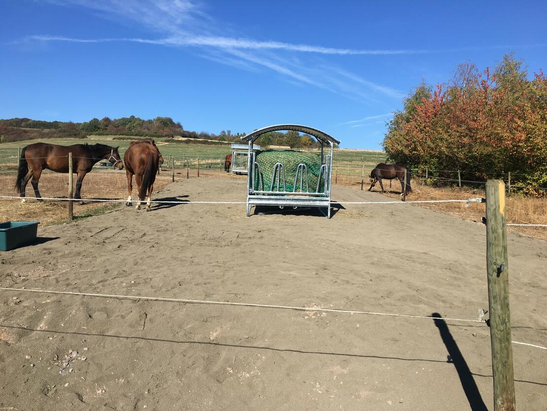 - zwei Offenstallplätze(24/7) für Senioren oder Handicap Pferde mit oder auf wunsch ohne Weideanschluss, 350 qm befestigtes Paddock. Preis ist Leistungs- und Nutzungsabhängig.