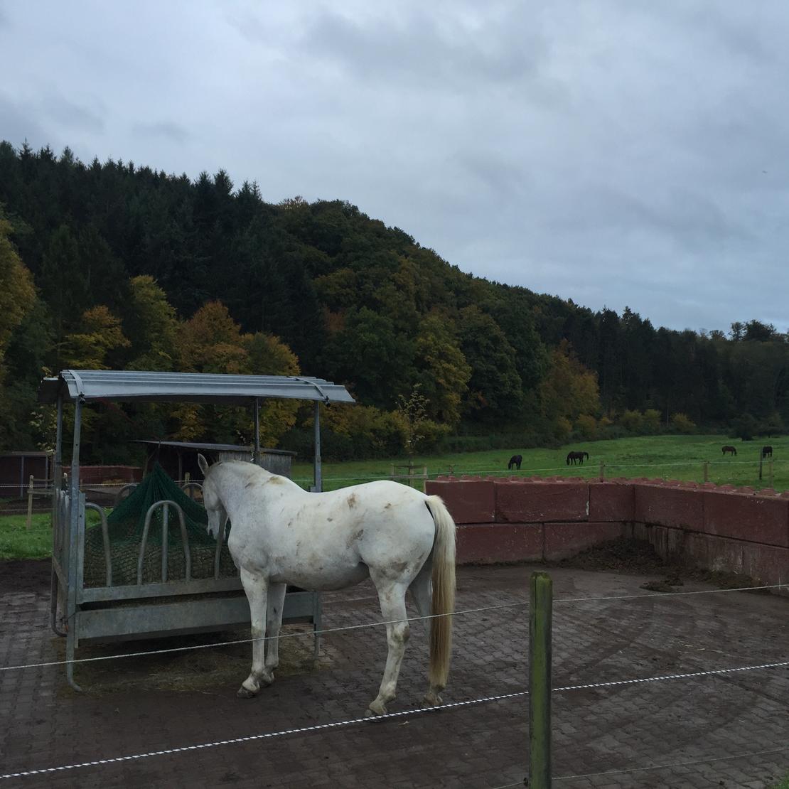 Offenstall Nummer 4 (Diät) mit großer Auslauffläche. Es wird nur Heu gefüttert und kein Stroh, es gibt eine Isolierte Liegefläche (Gummimatten) im Unterstand. Der Stall ist zur Zeit mit 1 Wallach, 1 Stuten belegt. (zur Zeit 2 Plätze frei). Nur Stuten können aufgenommen werden in dieser Gruppe. Weidegang muss durch den Einsteller individuell erfolgen (selber rein holen und raus lassen). Die Weide liegt direkt am Stall nur Tor öffnen. Hier ist eine Zeitgesteuerte Raufe im Einsatz (Diät! gesamt Fresszeit zur Zeit 7 Stunden). Außenboxen 2 Stück an der Schloß Anlage direkt am Reitplatz. Die Boxen stehen zur temporären Nutzung zur Verfügung falls mal ein Pferd verletzt ist oder der Hufschmied kommt. Wiesen direkt an der Anlage stehen stundenweise zur Verfügung.